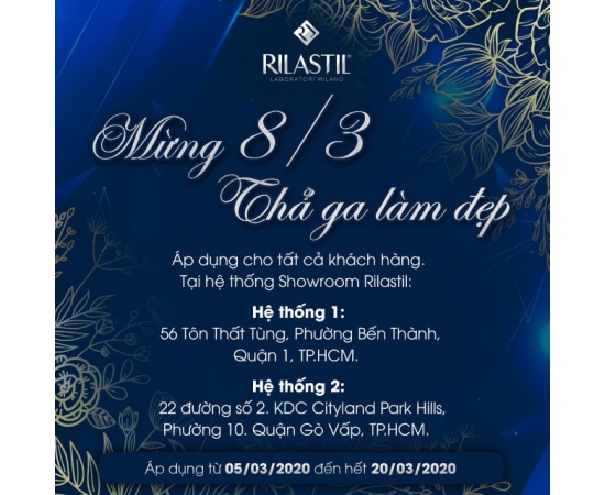 Nhân dịp Quốc Tế Phụ Nữ, Rilastil dành tặng chương trình ưu đãi đặc biệt với chủ đề " TÔN VINH PHÁI ĐẸP" đến quý chị em chúng ta. Làm đẹp thả ga - không lo về giá