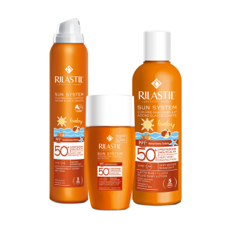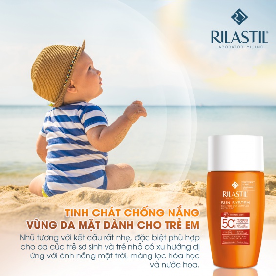 Trẻ em có một làn da mỏng manh, không được bảo vệ, bởi vì không có được sự bảo vệ tự nhiên xuất hiện khi ở tuổi trưởng thành, chúng ta tiếp xúc với tia UV. Lớp sừng trên da của chúng thực sự mỏng hơn, hệ thống miễn dịch chưa phát triển hoàn chỉnh, việc sản xuất Melanin không được tổ chức tốt và màng Hydrolipidic không được phát triển đầy đủ, vì tuyến bã nhờn chỉ hoạt động hoàn toàn khi dậy thì. Do đó, việc chống nắng trong thời thơ ấu là vô cùng quan trọng, không chỉ để bảo vệ em bé khỏi những vết cháy nắng nguy hiểm mà còn đảm bảo rằng làn da của chúng sẽ an toàn trong suốt quá trình tăng trưởng. Phòng thí nghiệm nghiên cứu Rilastil đã thiết kế hai loại nhũ tương dành riêng cho việc bảo vệ da trẻ sơ sinh, hấp thu nhanh và rất bền với nước, cát và mồ hôi.