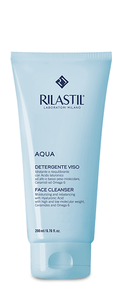 Dòng sản phẩm Sữa rửa mặt Rilastil Aqua Face Cleanser được tạo ra bởi các phòng thí nghiệm nghiên cứu của Istituto Ganassini để đặc biệt dành cho da bị mất nước.